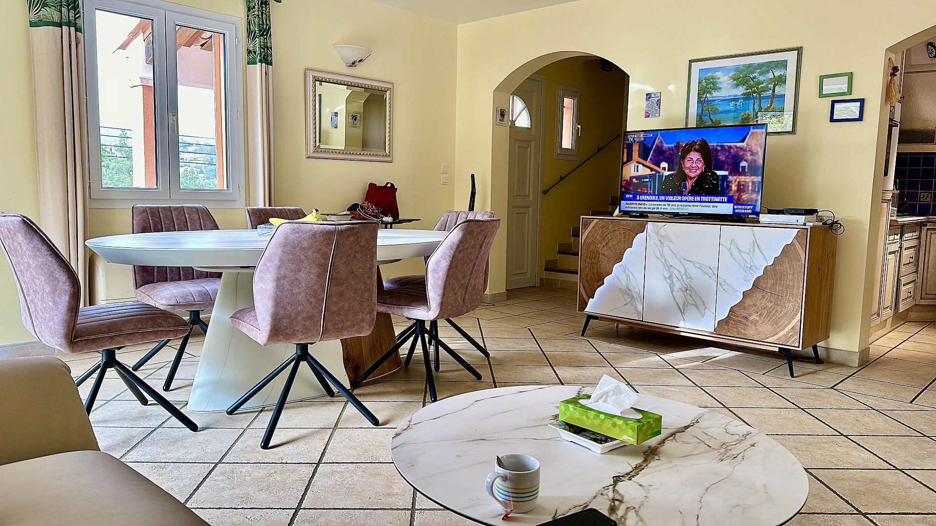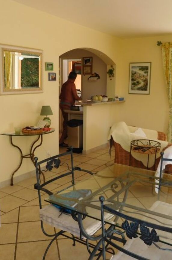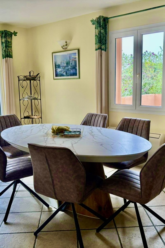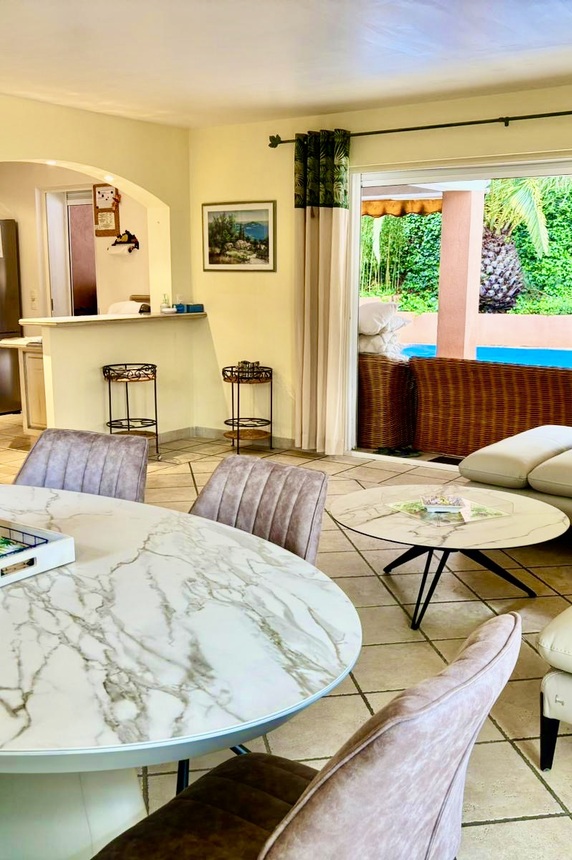 Welcome to our quaint villa, which is tucked away in Sainte-Maxime's exclusive Sémaphore district. This serene haven provides the perfect setting for a calm and floral vacation. The magnificent expansive views of the Mediterranean Sea are one of the neighborhood's most well-known features. Our home has all the contemporary conveniences you require and radiates a cosy environment. The living areas have simple yet sophisticated décor and are intended for leisure and social interaction. Thanks to recent renovations, we have successfully incorporated Provençal design in the kitchen and bathroom while giving the rest of the house a more contemporary feel.