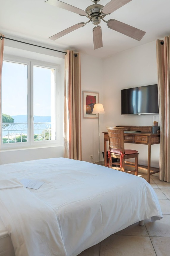 Villa Les Rosiers offers the pleasure of a remarkable setting with a magnificent sea view and a refined interior, highlighted by the presence of an integrated art gallery. Without excess or extravagance, and in harmony with its surroundings. The 4-star hotel has 12 spacious suites overlooking a divine garden, a heated pool overlooking the sea and an immense beach surrounding it.