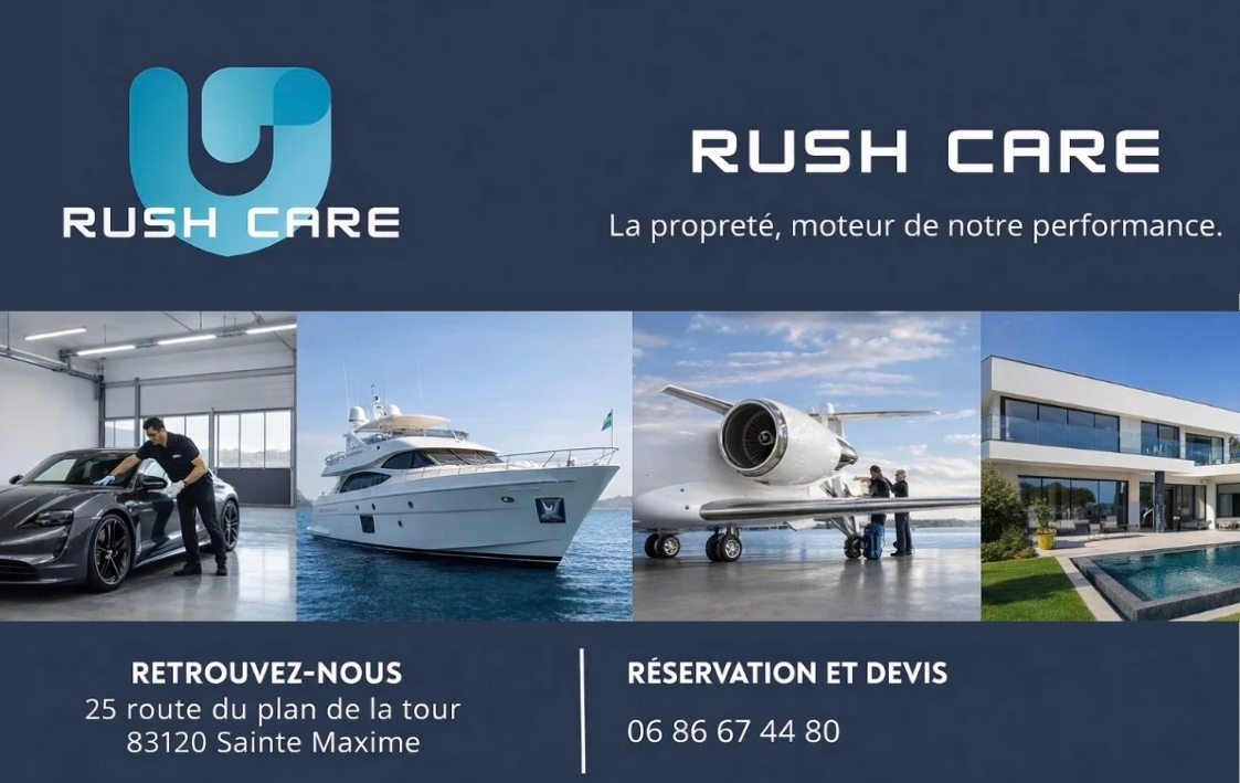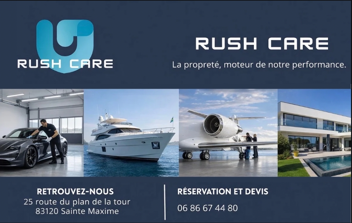RUSH CARE offers comprehensive cleaning solutions for both businesses and private individuals. Industrial cleaning (businesses, campsites, residential properties), yacht maintenance, aviation cleaning and vehicle washing: we approach every job with the same high standards of quality.