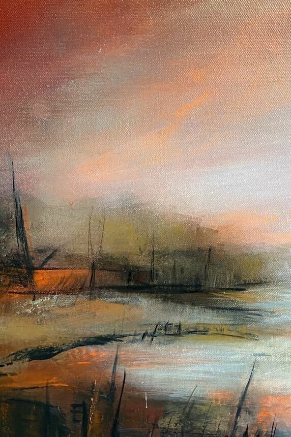 La peinture de M.C. LAMARCHE s’émancipe peu à peu du réel pour atteindre l’essence même de l’émotion. Ses nouvelles explorations artistiques s’affranchissent du cadre figuratif sans basculer dans l’abstraction. Elle crée des paysages imaginaires, empreints de poésie et de lumière, où la beauté du vivant se révèle sans jamais s’imposer. L’artiste suggère plus qu’elle ne montre, laissant à chacun la liberté d’interpréter, de rêver. Animée par le désir de peindre librement, sans plan préétabli, M.C. Lamarche privilégie les techniques mixtes, qui lui offrent un champ de création infini. Forte de près de quarante années de passion pour la peinture, elle poursuit son aventure artistique avec une sincérité et une sensibilité qui touchent au cœur.