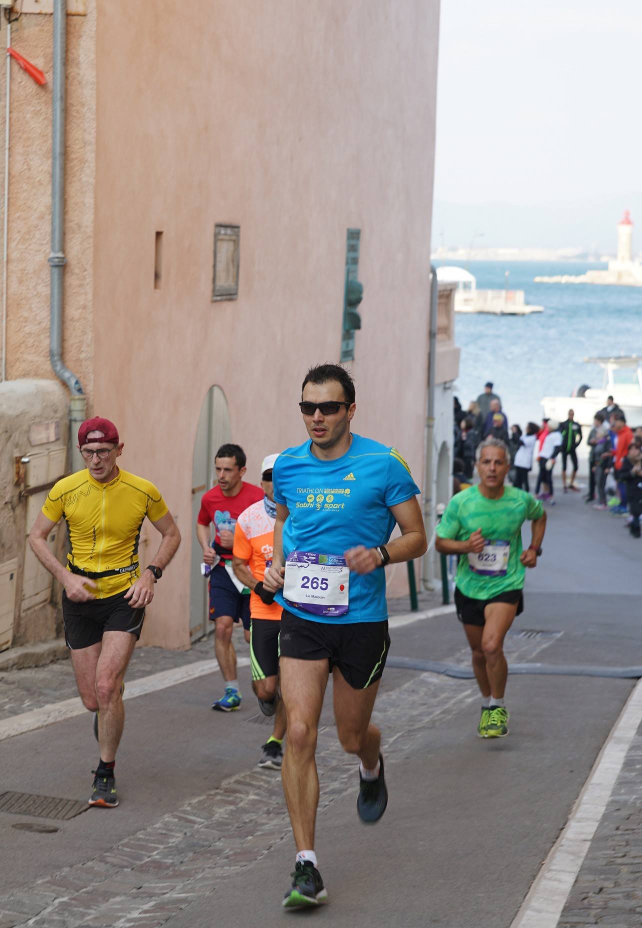 Distances : - Marathon 42.195 km (Sainte-Maxime > Cavalaire-sur-Mer) - Marathon Duo 2x21.1 km (Sainte-Maxime > Saint-Tropez / Saint-Tropez > Cavalaire- sur-Mer) - Marathon Relais en équipe de 4 (Sainte-Maxime > Gassin / Gassin > Saint-Tropez / Saint-Tropez > Ramatuelle / Ramatuelle > Cavalaire-sur-Mer) - Transgolfe 19 km (Sainte-Maxime > Saint-Tropez) - 10 km (La Croix-Valmer > Cavalaire-sur-Mer) Parcours : départ à Sainte-Maxime, arrivée à Cavalaire-sur-Mer. Le tracé traverse des paysages aussi variés qu’exceptionnels : littoral méditerranéen, vignobles, collines boisées et garrigue.