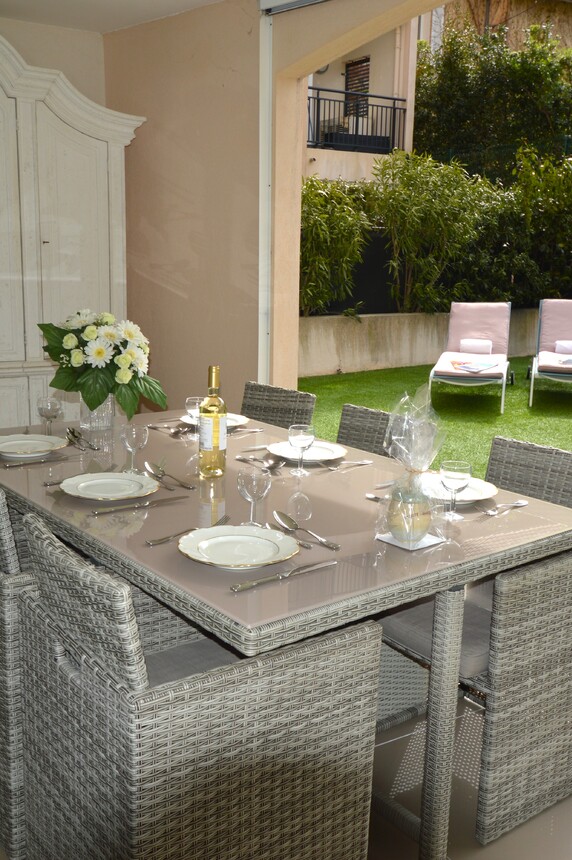 Il bénéficie d'une position idéale à proximité des plages, port et des commerces du centre ville de Sainte-Maxime. Chaque pièce est décorée d'une ambiance différente sur le thème du sport et agrémentée de tableaux.