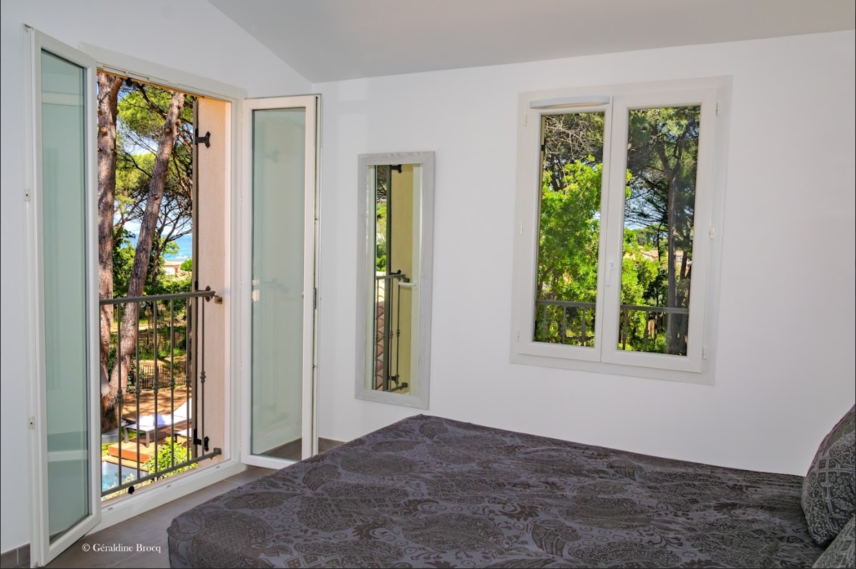 Un coin de paradis entre mer et nature, à Sainte-Maxime. Amoureux de sport, de randonnée et de grands espaces, nous avons imaginé ce lieu comme un cocon chaleureux propice à la détente et aux retrouvailles en pleine nature. À seulement cinq minutes à pied des plages de sable fin de La Nartelle, cette villa de 110 m² vous ouvre ses portes pour des séjours en famille ou entre amis. Entièrement climatisée, équipée avec soin et pensée pour votre confort, elle réunit tous les ingrédients pour des vacances inoubliables. Détendez-vous dans votre piscine privée, partagez des repas en plein air sous les pins et profitez de trois belles chambres, dont une suite parentale avec salle d'eau, toilettes et dressing. Le cadre est idyllique, la nature environnante apaisante, et chaque détail a été pensé pour vous faire sentir comme chez vous. Notre priorité ? Vous offrir une expérience authentique, basée sur la confiance, le respect et la convivialité. Nous vous accueillons chaleureusement et restons à votre disposition à tout moment pour vous accompagner tout au long de votre séjour. Laissez-vous séduire par le charme discret de cette villa d'exception et offrez-vous une parenthèse enchantée sur la côte varoise. Il est plutôt facile de se déplacer à Sainte-Maxime, avec des commerces significatifs en bordure de ville. Vous trouverez un supermarché Carrefour à l’entrée de la ville pour les courses importantes, ainsi qu'un Carrefour Market proche du centre-ville. À moins d'un kilomètre, sur l'avenue Georges Pompidou, vous trouverez une épicerie SPAR très pratique. À quelques mètres, vous trouverez la pharmacie du Preconil. À une centaine de mètres, toujours dans la continuité, au bord de la mer, sur l'avenue de Lattre, vous trouverez une excellente boulangerie-pâtisserie, « Laveissière ». Chaque jeudi matin, un marché alimentaire est facilement accessible en centre-ville. Tous les lundis et vendredis matins, un petit marché est également organisé à 800 mètres de votre logement, sur l'espace boulodrome de l'avenue Jean-Mermoz. Le vendredi matin, un marché généraliste est installé place Jean-Mermoz, en centre-ville. Un très joli marché couvert et ouvert tous les jours se trouve au centre des rues piétonnes de Sainte-Maxime et propose des poissonneries, des boucheries, des primeurs, etc. Pas de serviettes de plage. Un coffre-fort est à votre disposition dans la chambre principale. Le linge de lit et les serviettes de toilette sont disponibles pour 20 € par personne et par séjour. Les lits sont faits à l’arrivée lorsque l’option location de linge est souscrite. Ménage de fin de séjour : forfait de 250 €. Ménage en cours de séjour possible sur demande.