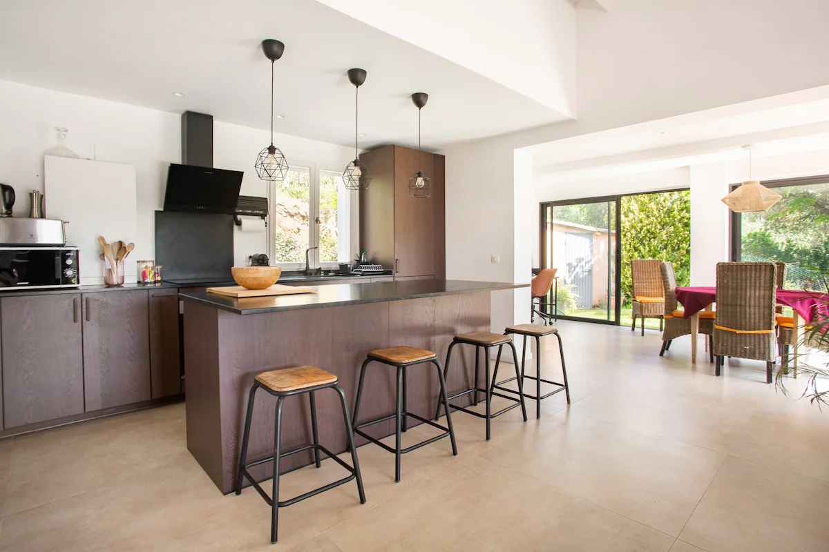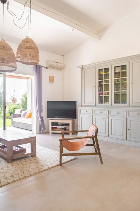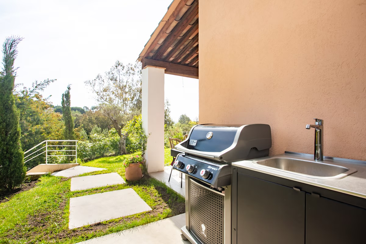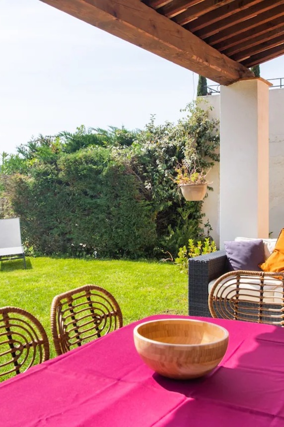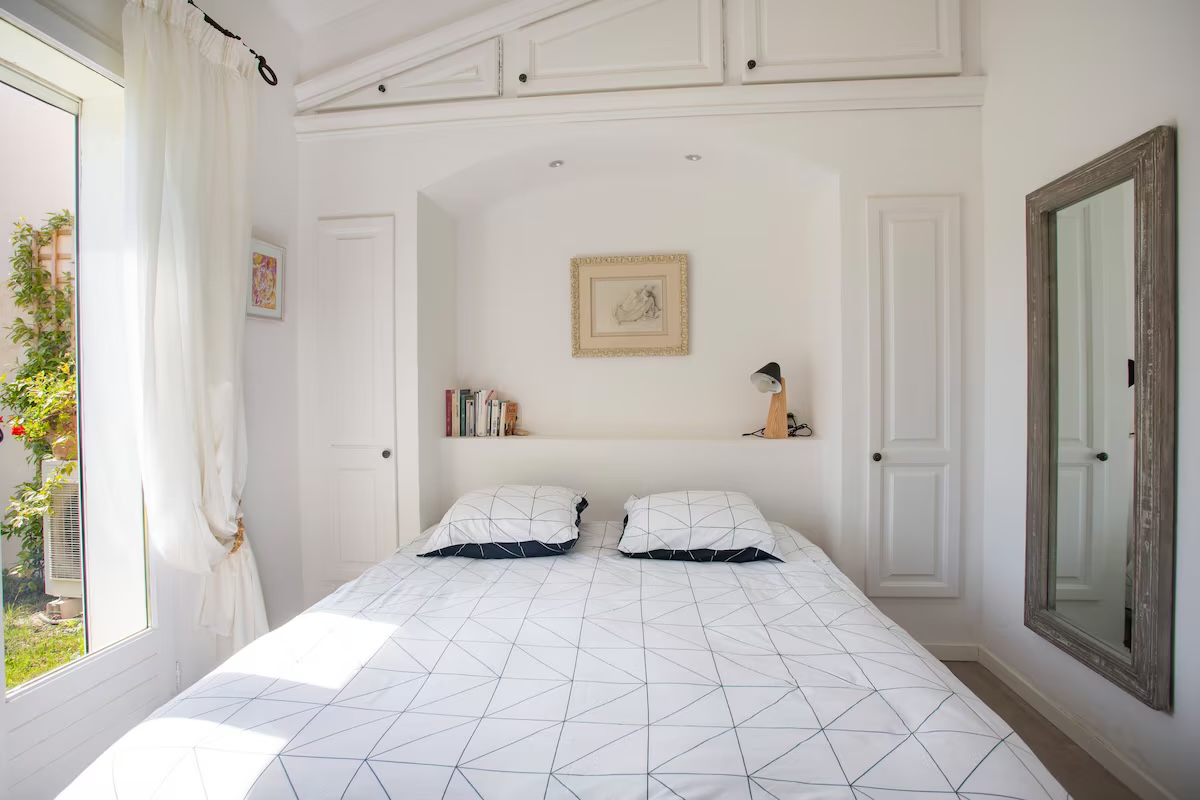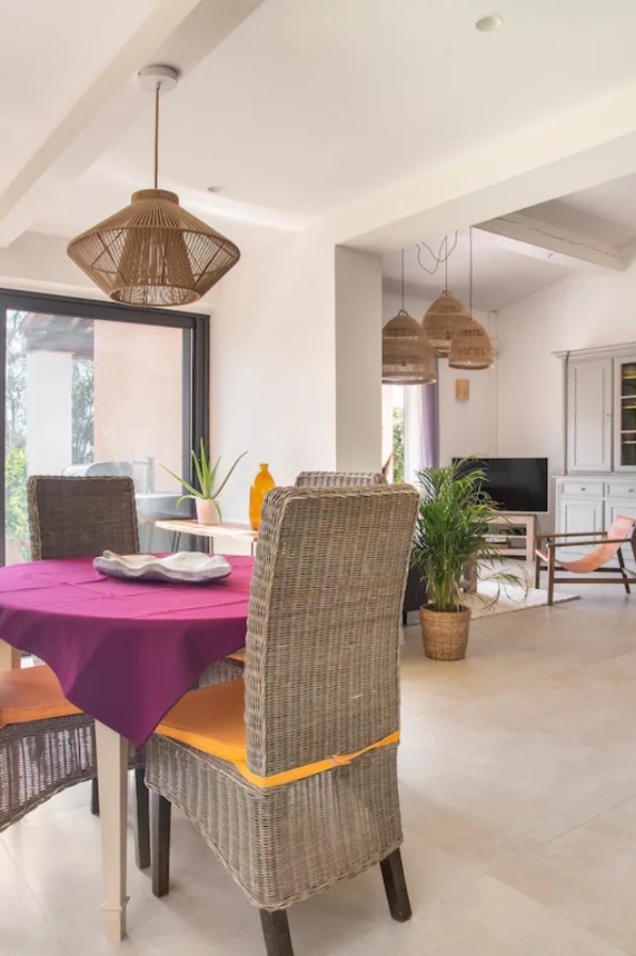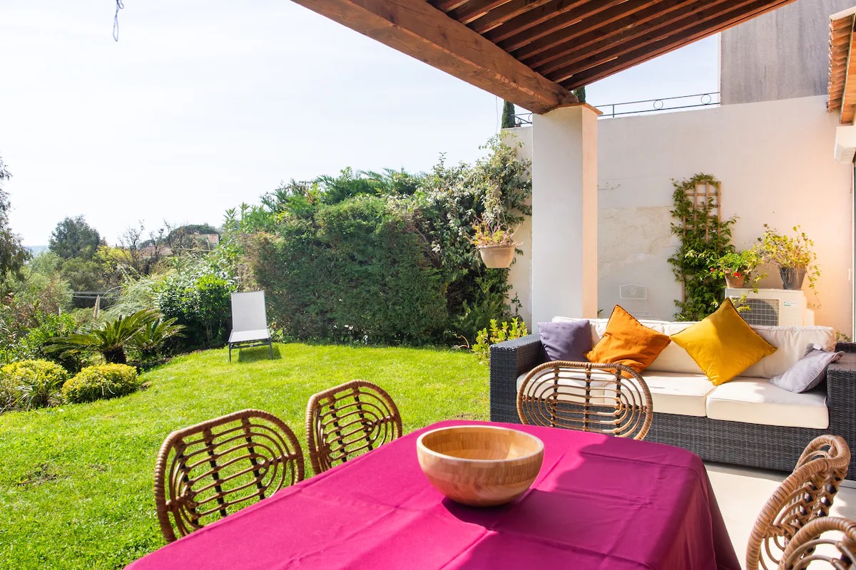Cette maison familiale rénovée se trouve à Sainte-Maxime, au cœur du golfe de Saint-Tropez. Conçue avec mon père, décorateur d'intérieur, comme un lieu confortable, lumineux et fonctionnel, elle est parfaite pour des vacances en famille ou entre amis. Ses espaces de vie sont spacieux et lumineux. La maison est entièrement climatisée et très lumineuse. Elle dispose d'un grand séjour de 55 m² agréable et convivial, ouvert sur une véranda donnant sur un jardin fleuri. Le mobilier est confortable et adapté aux longs séjours. La cuisine ouverte, organisée autour d'un îlot central, est entièrement équipée. - four et plaque à induction ; - cafetières, bouilloire, grille-pain ; - un robot de cuisine et de nombreux accessoires ; Une terrasse extérieure permet de prendre ses repas dehors et un barbecue Weber est à disposition. Les chambres et la salle de bains La maison offre 5 couchages : - la chambre principale (12 m²) avec un lit queen size (160 x 200), lumineuse et offrant une vue sur le jardin ; - une deuxième chambre (10 m²) avec un lit double superposé (140 x 200 + 90 x 200), idéale pour les enfants ou les invités ; La salle de bains moderne dispose d'une grande douche. Le linge de lit et les serviettes sont fournis. Le jardin et la piscine sont à votre disposition. Le jardin de plus de 300 m², arboré d'oliviers, de palmiers et de citronniers, est parfait pour les familles et les animaux de compagnie. La piscine partagée de la résidence, située à moins de 20 mètres, est très calme (résidence de dix maisons environ). Elle est ouverte toute l'année et praticable de mai à octobre. Elle dispose d'une zone peu profonde adaptée aux enfants. Équipements pour la famille et les loisirs : - équipements pour bébé : lit parapluie, baignoire, table à langer, chaise haute ; - Wi-Fi fibre ; - un espace de travail avec écran et clavier (télétravail) ; - une place de parking abritée et un parking public à proximité ;