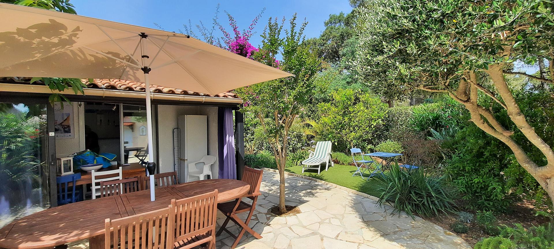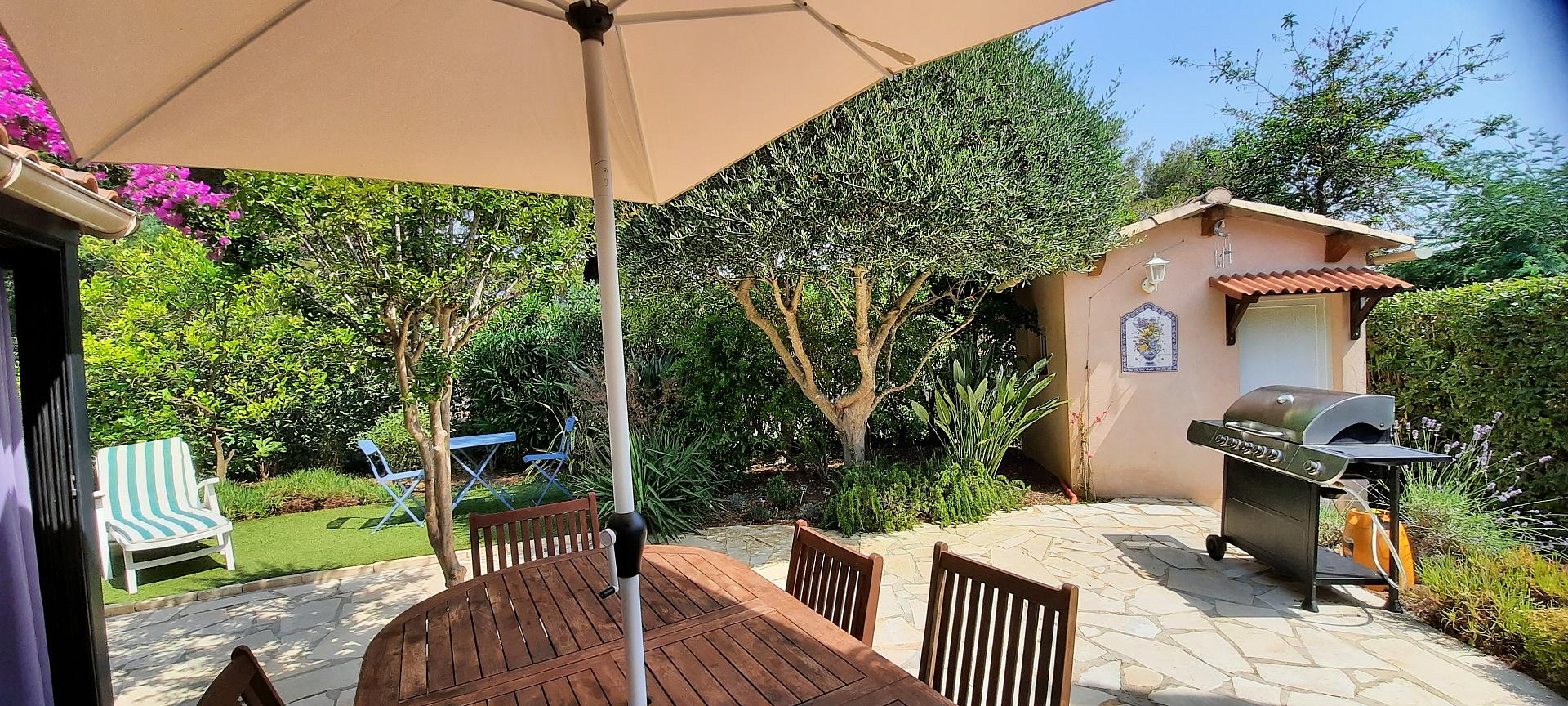 Mazet provençal cosy à 300 m de la plage de la Nartelle, Sainte-Maxime. Jardin privé, terrasses, BBQ, clim, Wi-Fi fibre, parking sécurisé. Idéal 2-4 pers (jusqu’à 6). Petit animal bienvenu . Calme, confort et mer à pied !