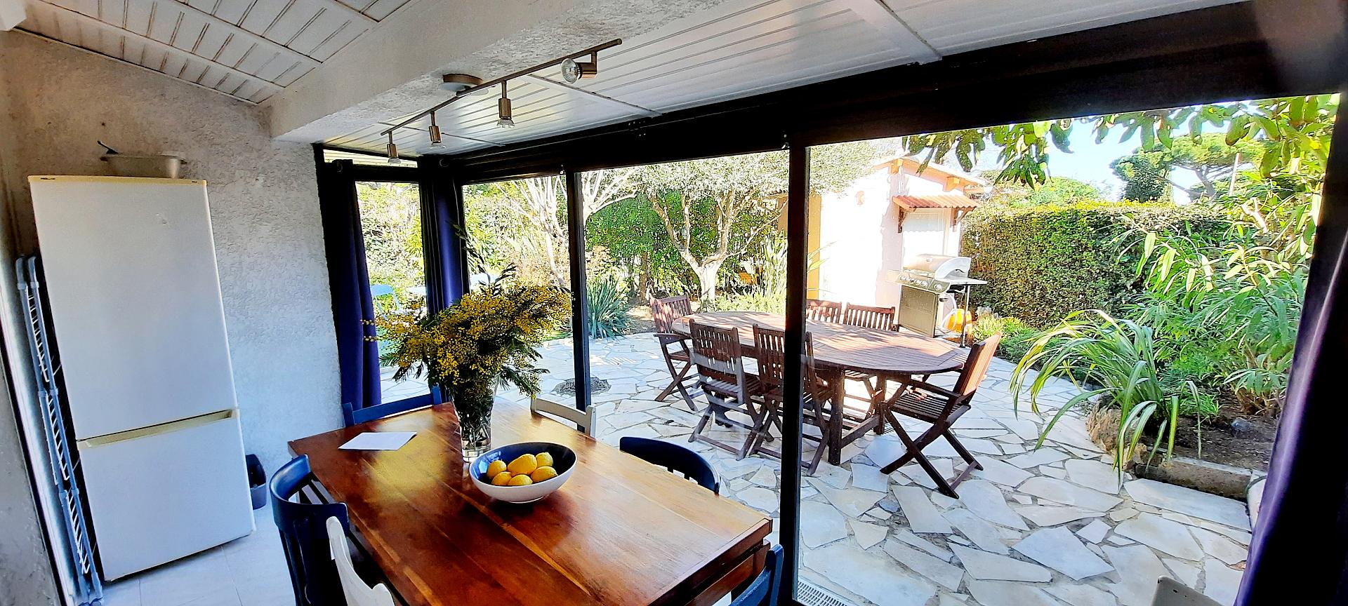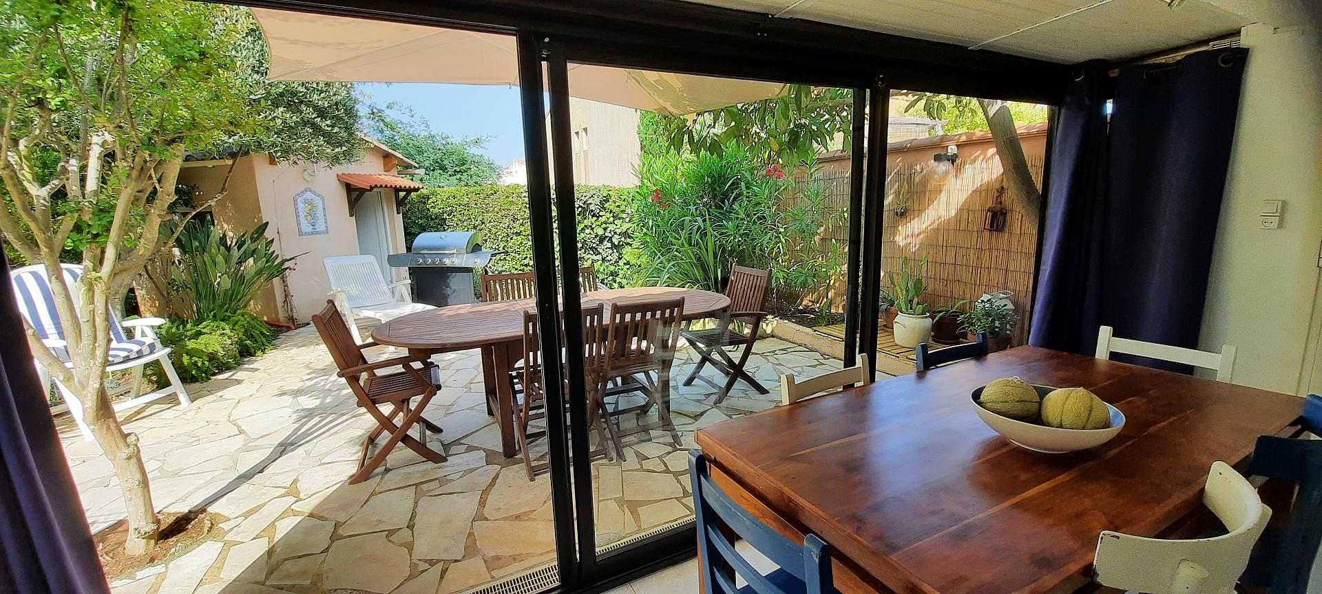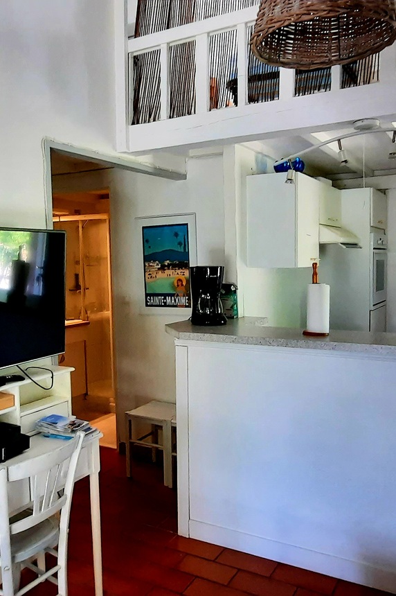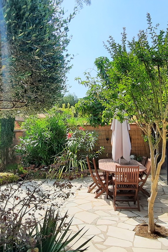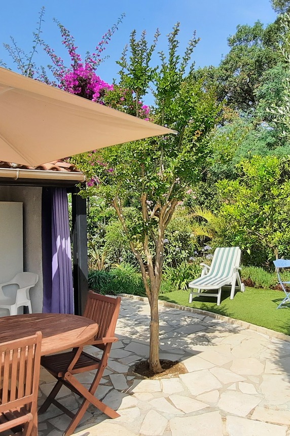 Votre coin de paradis en toutes saisons à seulement 300 mètres de la très belle plage de sable de la Nartelle, à 3 km du centre de Sainte-Maxime et de tous les commerces, Vous profiterez de notre mazet cosy et confortable, de son jardin méditerranéen arboré et de ses terrasses privées. Vos petits animaux sont bienvenus ! Le MAZET est un petit MAS, une maisonnette de Provence de 46 m2 (36 + 10 en mezzanine) avec un JARDIN MEDITERRANEEN PRIVE et terrasses, salon de jardin, bains de soleil, parasol, barbecue gaz, 2 vélos, niché et cosy au fond du domaine sécurisé du Soleil d’Or... Olivier, palmier, citronnier, mimosas, grenadier, avocatier… un vrai jardin botanique fleuri ! Classement meublé de tourisme 2 étoiles tout confort. Idéal pour 2, 3 ou 4, possible pour 5 ou 6 grâce au canapé Rapido... Climatisation réversible Internet Wifi fibre haut débit et gratuit (top ) Petit animal propre bienvenu - Jardin clos (top, top ) Non-fumeur pour le confort de tous Ménage fin de séjour inclus SUPER EQUIPE Séjour avec canapé-lit rapido, table basse, TV grand écran, Box WIFI fibre, bibliothèque Cuisine américaine avec bar, 4 plaques cuisson, four, micro-ondes, lave-vaisselle, grille-pain, lave-linge... Véranda salle à manger avec réfrigérateur-congélateur, cellier Chambre 1 en alcôve au RDC, lit double 140 cm Chambre 2 en mezzanine, accès par échelle de meunier, lit double 140 cm Canapé-lit rapido pour 2 couchages supplémentaires possibles dans le séjour, pas idéal mais possible . Idéal pour invités de passage. Et pour bébé ou jeune enfant… un lit pliant et une chaise haute à disposition sans supplément. PARKING GRATUIT DANS DOMAINE SECURISE SOUS PORTAIL ET DIGICODE PLAGES ET NOMBREUX RESTAURANTS A PIED ! IDEALEMENT DU DIMANCHE AU DIMANCHE 3 NUITS minimum TARIFS de 500 à 1500 €/ semaine selon période choisie et disponibles sur notre calendrier. Contactez-nous pour toutes infos, photos ou pour réserver... Nous vous répondrons très vite et avec grand plaisir. A très bientôt ! Alain et Marie MAZET DU SOLEIL D’OR à LA NARTELLE - SAINTE MAXIME