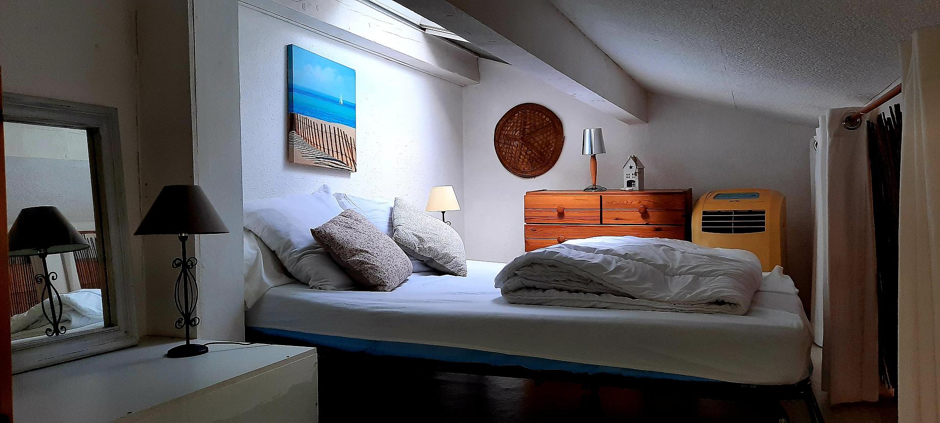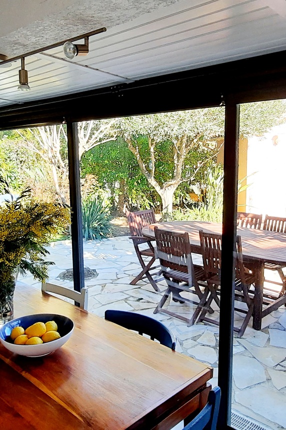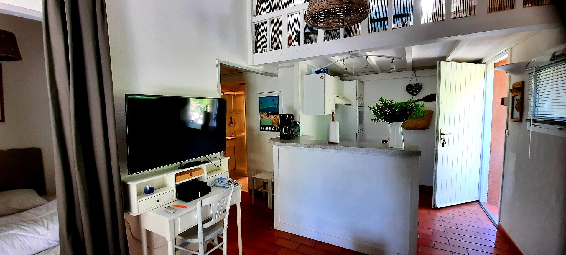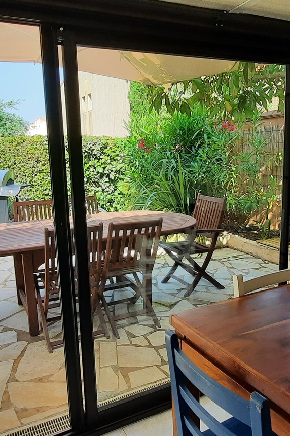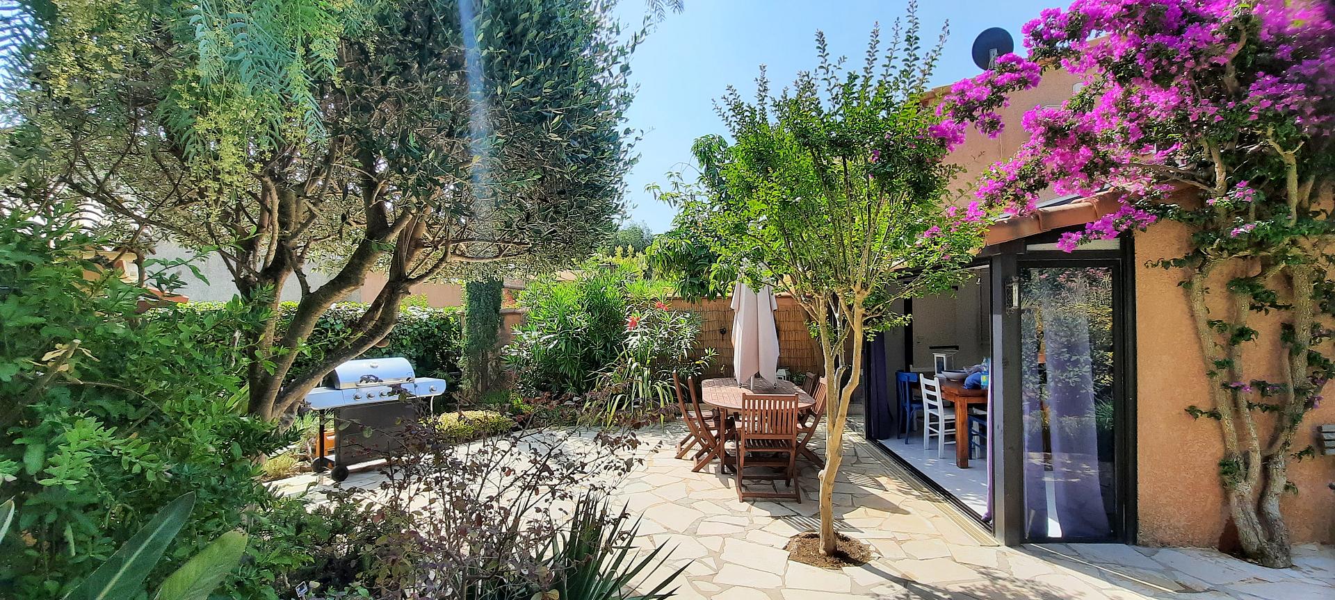Votre coin de paradis en toutes saisons à seulement 300 mètres de la très belle plage de sable de la Nartelle, à 3 km du centre de Sainte-Maxime et de tous les commerces, Vous profiterez de notre mazet cosy et confortable, de son jardin méditerranéen arboré et de ses terrasses privées. Vos petits animaux sont bienvenus ! Le MAZET est un petit MAS, une maisonnette de Provence de 46 m2 (36 + 10 en mezzanine) avec un JARDIN MEDITERRANEEN PRIVE et terrasses, salon de jardin, bains de soleil, parasol, barbecue gaz, 2 vélos, niché et cosy au fond du domaine sécurisé du Soleil d’Or... Olivier, palmier, citronnier, mimosas, grenadier, avocatier… un vrai jardin botanique fleuri ! Classement meublé de tourisme 2 étoiles tout confort. Idéal pour 2, 3 ou 4, possible pour 5 ou 6 grâce au canapé Rapido... Climatisation réversible Internet Wifi fibre haut débit et gratuit (top ) Petit animal propre bienvenu - Jardin clos (top, top ) Non-fumeur pour le confort de tous Ménage fin de séjour inclus SUPER EQUIPE Séjour avec canapé-lit rapido, table basse, TV grand écran, Box WIFI fibre, bibliothèque Cuisine américaine avec bar, 4 plaques cuisson, four, micro-ondes, lave-vaisselle, grille-pain, lave-linge... Véranda salle à manger avec réfrigérateur-congélateur, cellier Chambre 1 en alcôve au RDC, lit double 140 cm Chambre 2 en mezzanine, accès par échelle de meunier, lit double 140 cm Canapé-lit rapido pour 2 couchages supplémentaires possibles dans le séjour, pas idéal mais possible . Idéal pour invités de passage. Et pour bébé ou jeune enfant… un lit pliant et une chaise haute à disposition sans supplément. PARKING GRATUIT DANS DOMAINE SECURISE SOUS PORTAIL ET DIGICODE PLAGES ET NOMBREUX RESTAURANTS A PIED ! IDEALEMENT DU DIMANCHE AU DIMANCHE 3 NUITS minimum TARIFS de 500 à 1500 €/ semaine selon période choisie et disponibles sur notre calendrier. Contactez-nous pour toutes infos, photos ou pour réserver... Nous vous répondrons très vite et avec grand plaisir. A très bientôt ! Alain et Marie MAZET DU SOLEIL D’OR à LA NARTELLE - SAINTE MAXIME