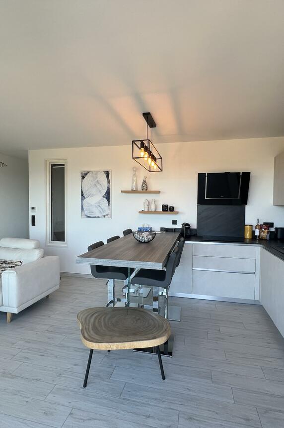 À Sainte-Maxime, dans le quartier résidentiel du Sémaphore, bel appartement pour 4 personnes à louer, situé au premier et dernier étage d'une résidence neuve. Il offre une superbe vue sur la mer et sur le Golfe de Saint-Tropez. Il dispose d'une grande terrasse de 20 m² et d'un appartement de 56 m² entièrement climatisé, composé d'un séjour avec cuisine ouvrant sur la terrasse, de deux chambres, d'une salle d'eau et de WC séparés. Garage en sous-sol. Classement du meublé : 4 étoiles. Les animaux ne sont pas admis. Le linge de maison est fourni. Le nettoyage final est en sus, au prix de 75 €. Le dépôt de garantie à verser à l'arrivée s'élève à 1 000 €. Les taxes de séjour sont en sus (montant variable en fonction de la durée, du prix de la location et du nombre de personnes de plus de 18 ans occupant le logement). Les charges sont comprises. L’acompte demandé est de 25 %.