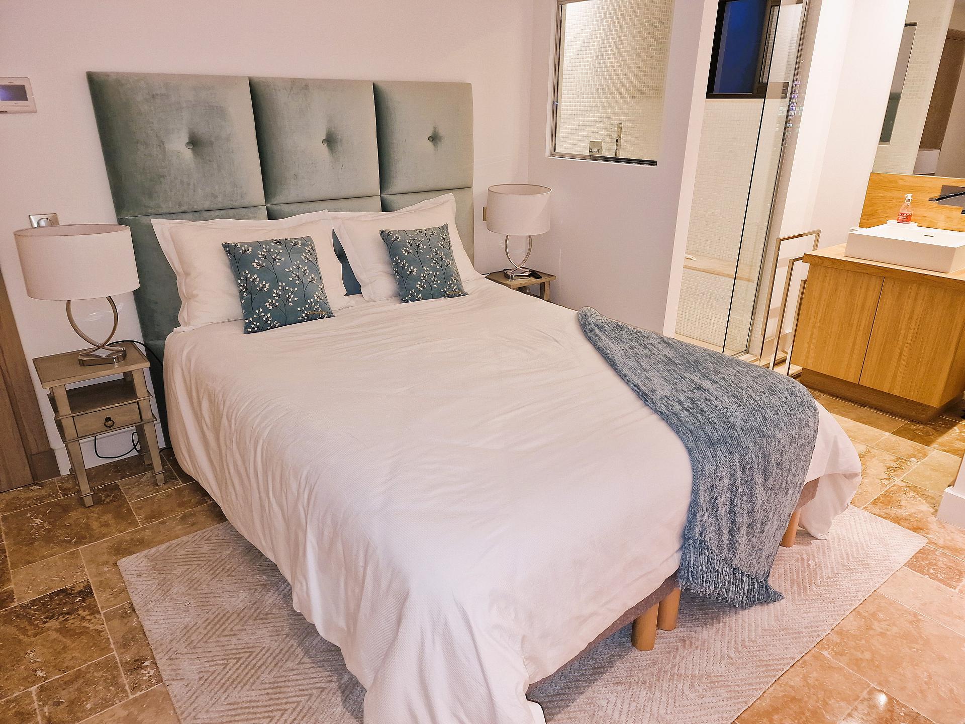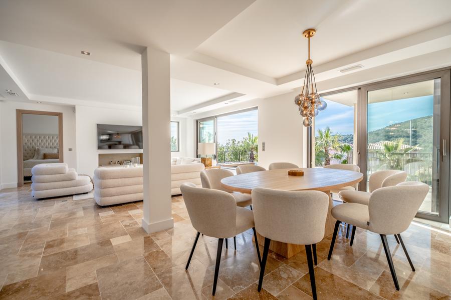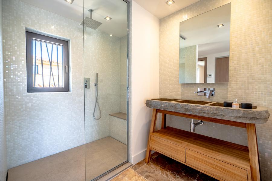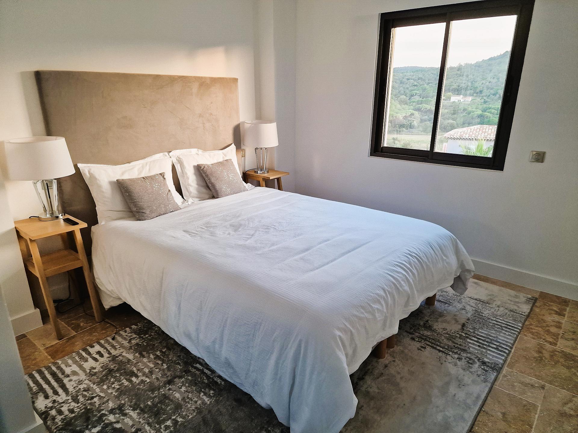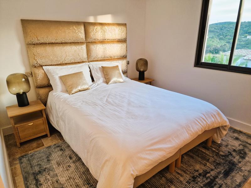 Magnifique villa neuve avec piscine à Sainte-Maxime pour 8 personnes. Elle offre : entrée, WC invités, vaste séjour salle à manger ouvrant sur terrasse, cuisine us très bien équipée, 4 suites (literie haut de gamme) avec salle d'eau et dressing, buanderie avec lave-linge et sèche-linge. 5 TV, wifi. Maison entièrement climatisée. Une piscine privée agrémente le jardin joliment arboré. Cuisine d'été avec plancha. Parking sécurisé. Dispositif de sécurité : 3 caméras extérieures. À proximité des commodités, dans un secteur calme et résidentiel. Vue sur les collines et aperçu mer. Linge de maison et serviettes de piscine fournis. Peuvent être prévues dans la présente location, selon les souhaits du locataire, les prestations suivantes : Accueil, Garde d'enfant, petit déjeuner, Nettoyage des locaux Chauffage de la piscine. Villa non accessible PMR.