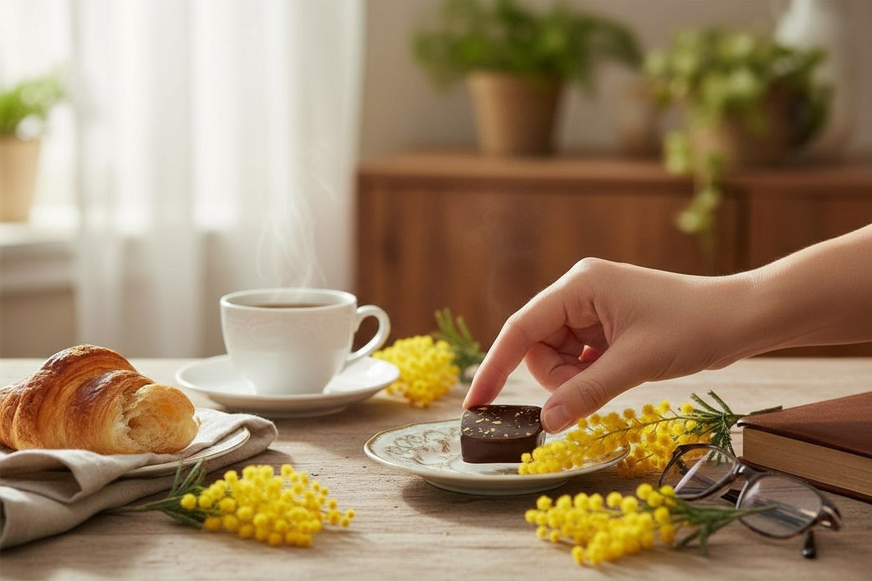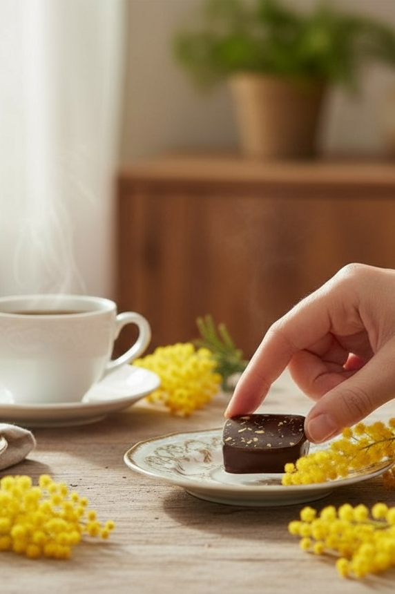 Da non perdere anche: un eccezionale pralinato al cioccolato con mandorle e mimosa e l'irresistibile "Spritz" delicatamente aromatizzato alla mimosa.